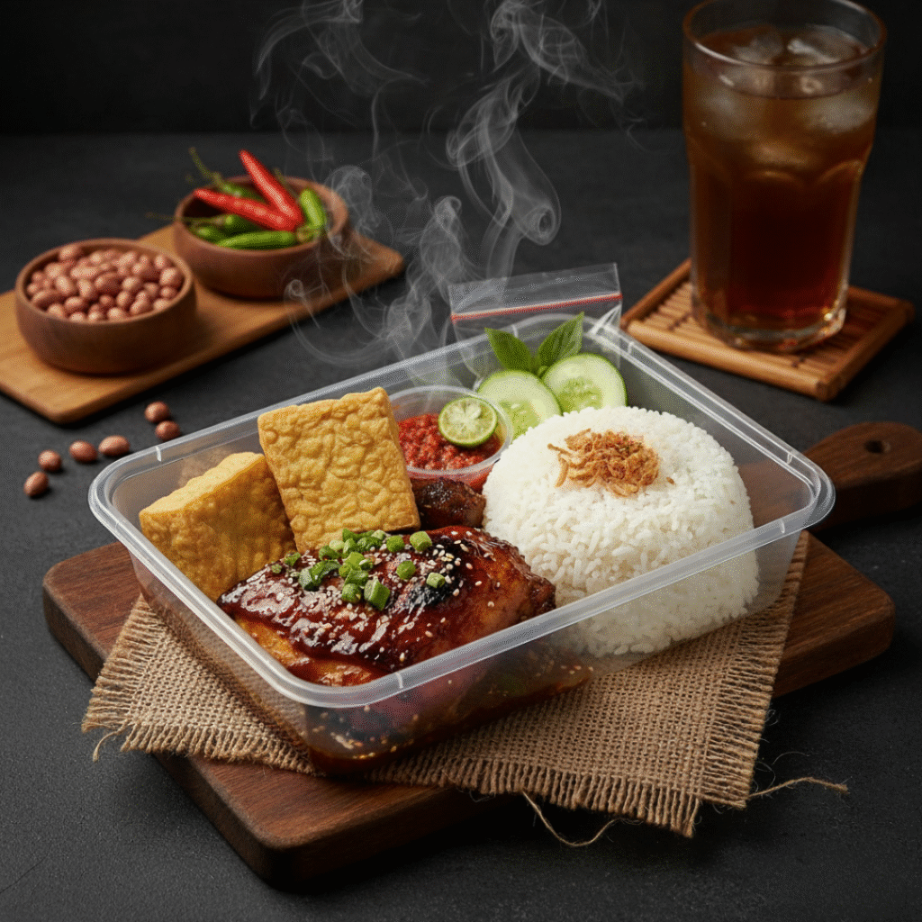 Nasi Putih, Ayam Kecap Bakar, Tahu, Tempe, Sambal Kecap, Lalapan