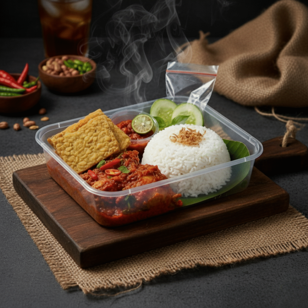 Nasi Putih, Ayam Rica Rica, Tahu, Tempe, Sambal Terasi, Lalapan